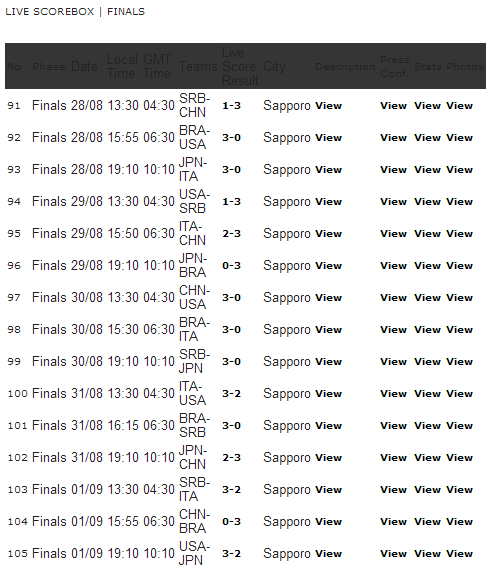 Trước đó vào ngày chủ nhật , đội bóng hai lần vô địch châu Âu Serbia đánh bại Italy trong một chiến thắng kịch tính để giành huy chương đồng với ba chiến thắng và hai trận thua tại vòng chung kết. Nhà đương kim vô địch World Grand Prix Mỹ cuối cùng đã có được chiến thắng đầu tiên tại vòng chung kết khi họ vượt qua đội bóng chủ nhà Nhật Bản 3-2 trong trận đấu cuối cùng trong ngày. Mặc dù thua trận đấu này nhưng Nhật Bản vẫn kịp lấy về cho mình 1 điểm và xếp hạng tư chung cuộc, họ được 5 điểm một chiến thắng 3-0 trước Ý và cùng để thua 2-3 trước đội tuyển Trung Quốc và Mỹ.