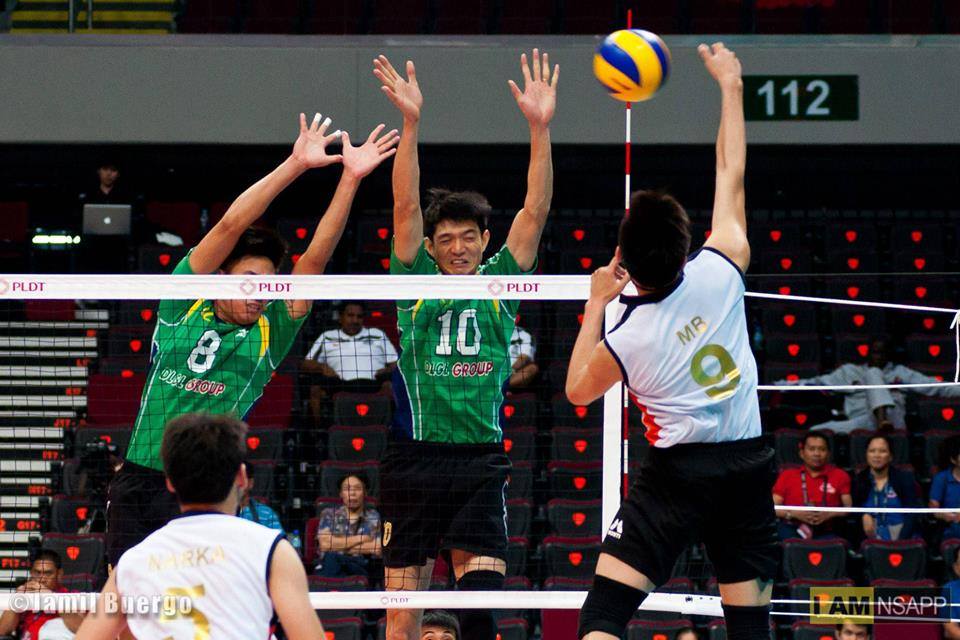 Chủ công Nguyễn Văn Hạnh (giữa) có sức bật “siêu khủng” và luôn cháy hết mình trên sàn đấu Ảnh: T.L